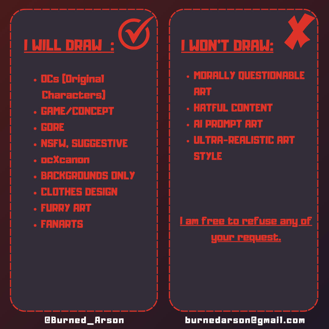 I draw a lot of different things and put my hands in a lot of different styles.My commissions are currently open, and takes maximum 3 weeks to be finished.I use Clip Studio paint PRO and am on a XP-PEN artist 16 second gen.
